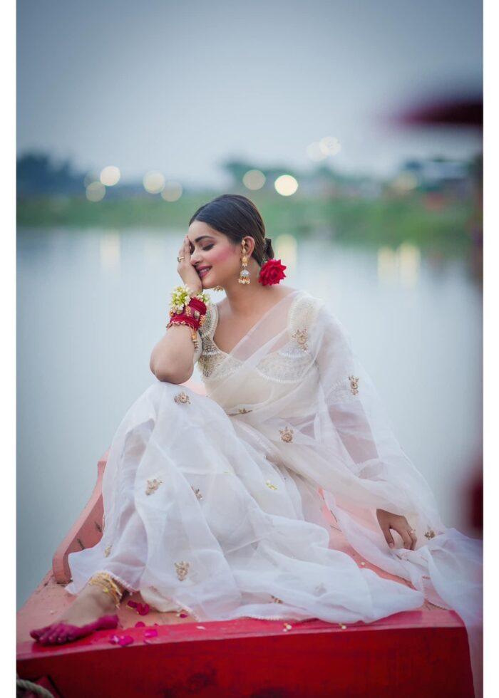 • White Muslin Saree with Minimal Zardozi Work & Gorgeous Stone Work Blouse
