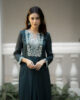 Draped in the richness of deep emerald green, this exquisite chinon silk kurta set is a celebration of timeless craftsmanship and refined elegance. Thoughtfully designed for the modern woman who appreciates heritage artistry, this ensemble effortlessly bridges traditional luxury with contemporary silhouettes.