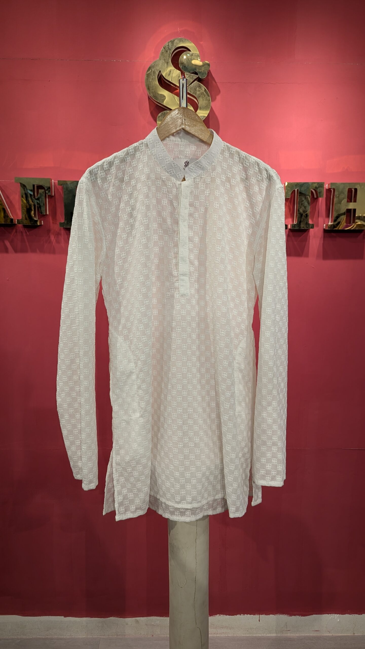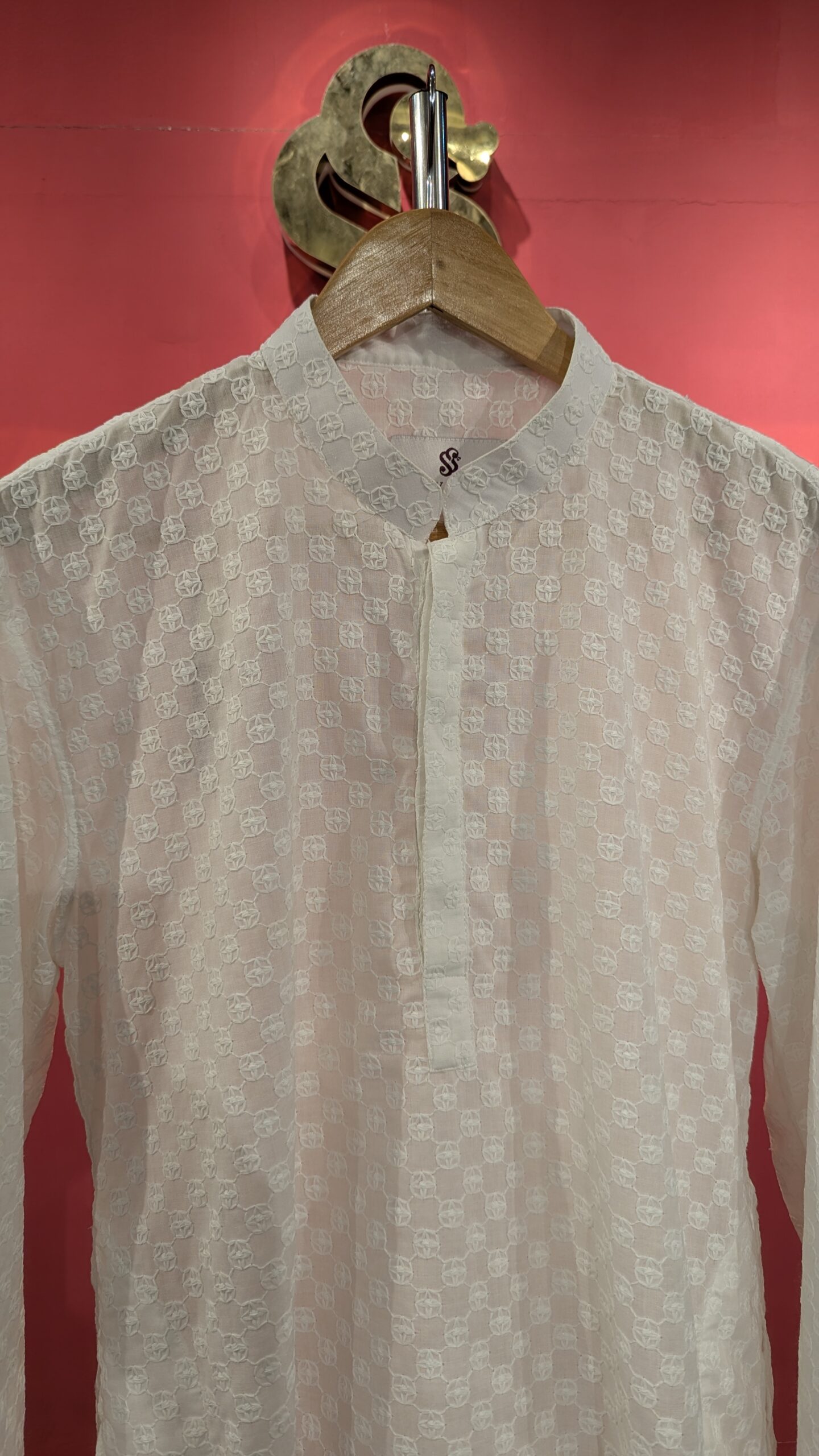 Men’s White Short Panjabi – Timeless Elegance in Every Stitch