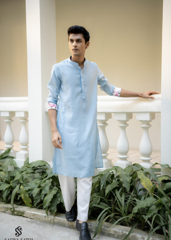 Sky Blue Floral Cuff Kurta Set