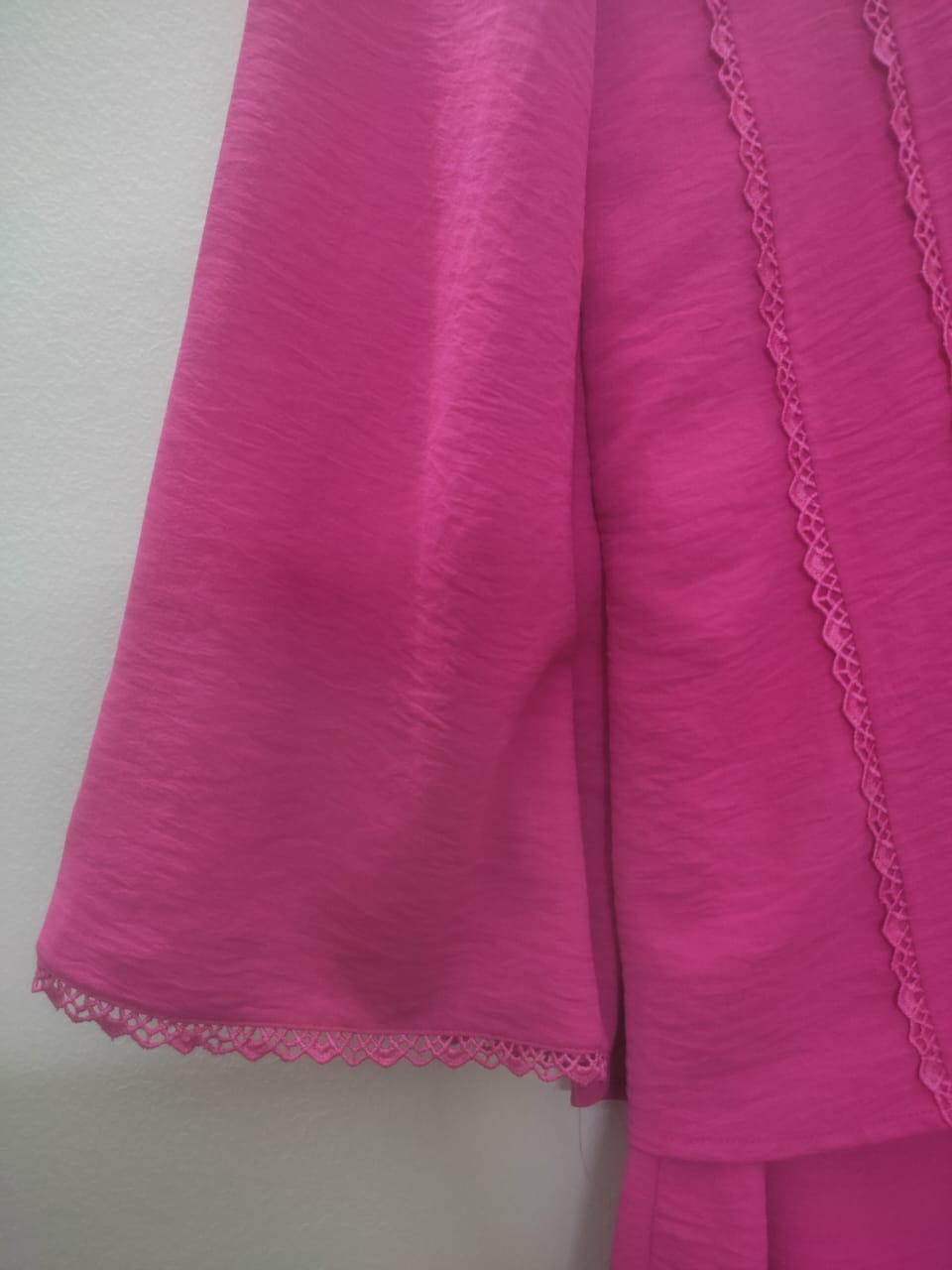 Step into effortless elegance with this stunning pink two-piece set. Designed with a relaxed silhouette and delicate lace accents, this outfit blends comfort and style for any occasion.