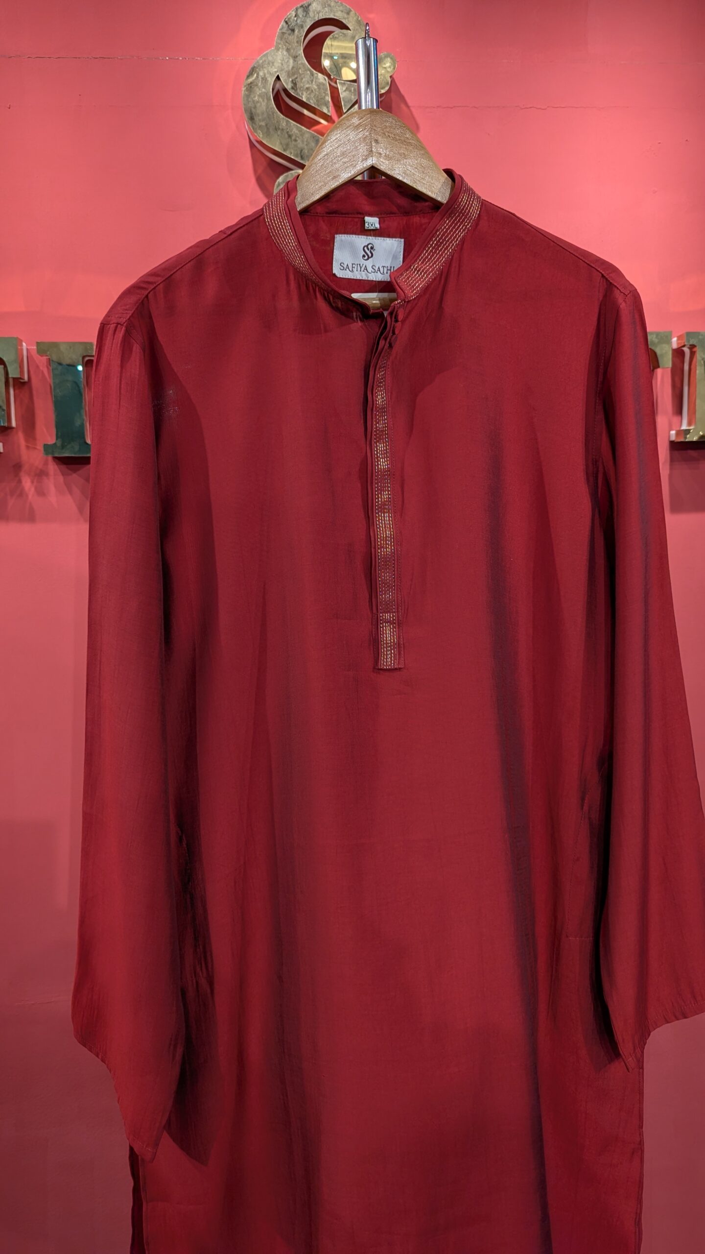 Elevate your ethnic wardrobe with this elegant maroon cotton kurta from Safinaz Athi. Crafted from breathable, premium cotton fabric, this kurta combines timeless tradition with understated sophistication — perfect for festive occasions, Eid celebrations, weddings, and formal gatherings.