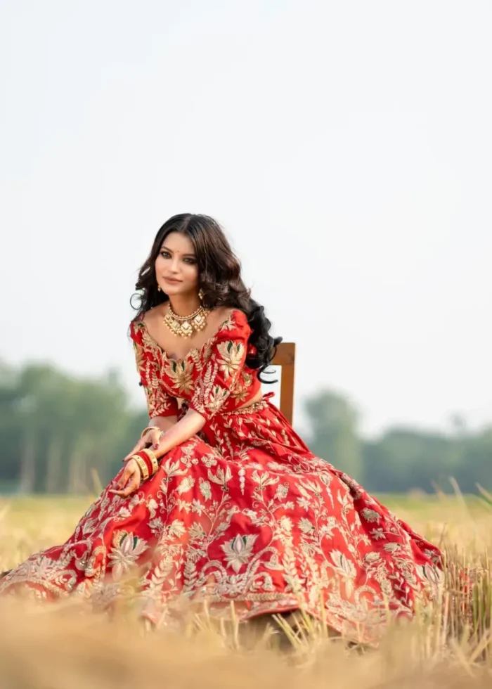• ●  Customization: Tailor the lehenga to your preferences with options for color and design customization to make your bridal vision come to life.